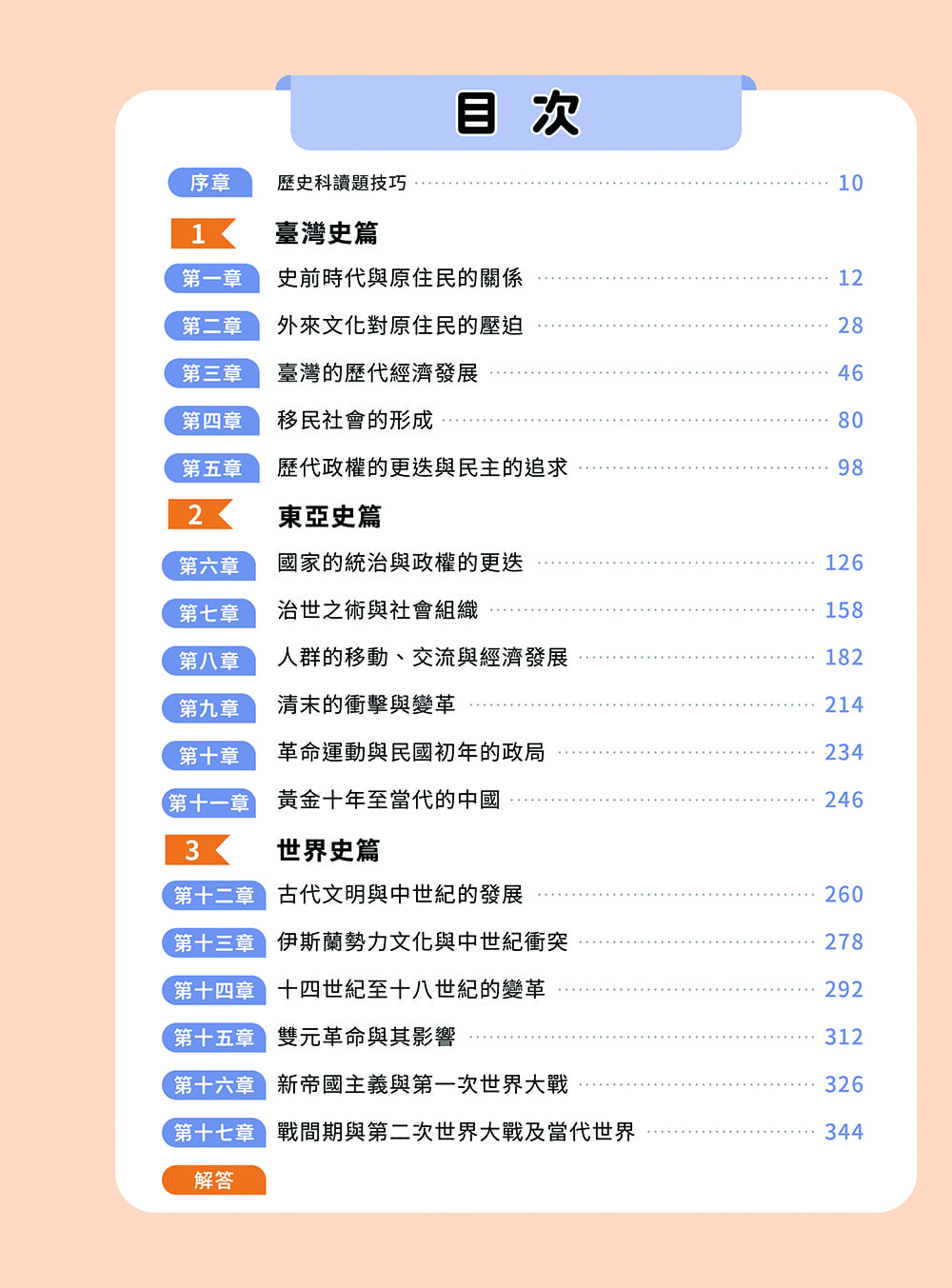 依據高中歷史課程單元架構編排,循序整理各單元核心概念,幫助學生建立完整且清晰的知識脈絡。