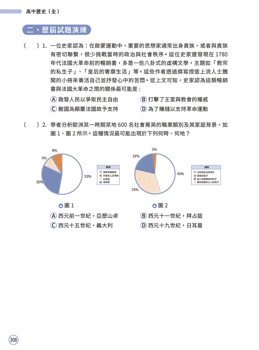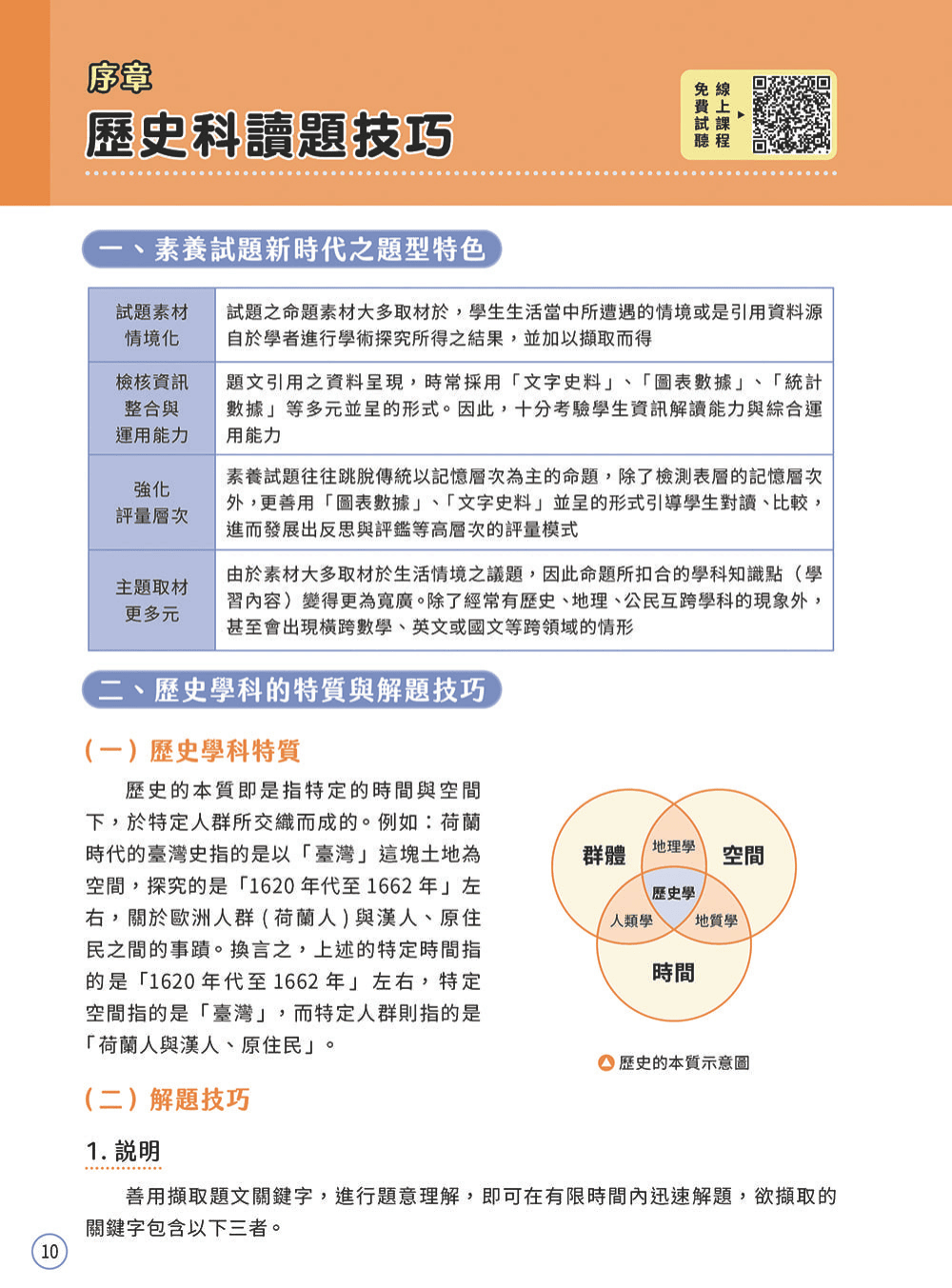 書中「歷屆試題」與「素養試題」的題型設計,緊扣內文歷史架構及重要考點,讓學生在學習觀念後立即實際演練,幫助學生練習以辨讀歷史脈絡的方法進行解題,進而熟悉跨科領域混合題型。