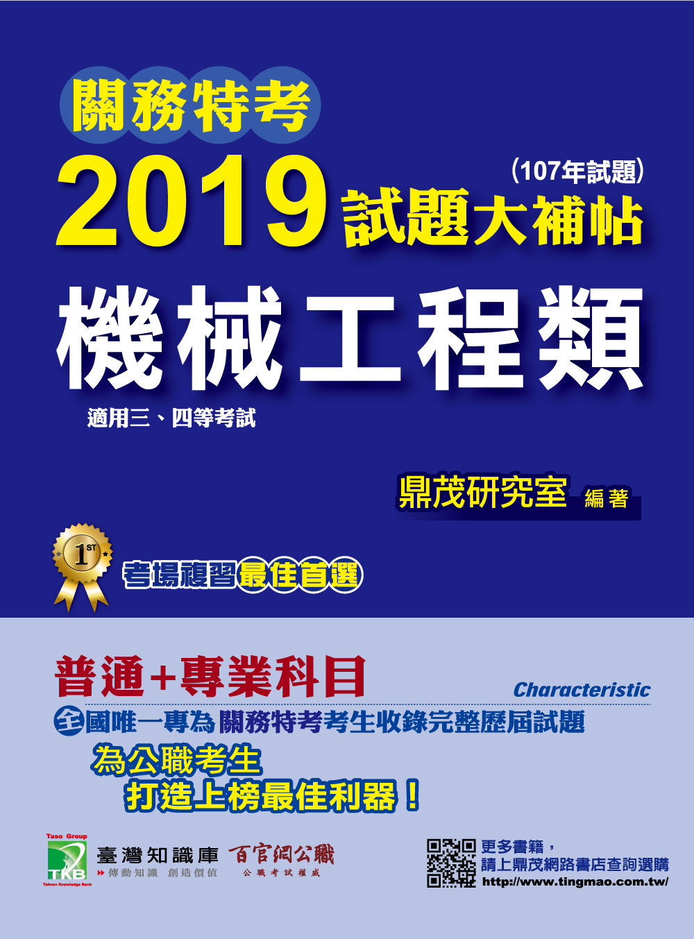 本書為【試題大補帖】系列叢書,專為【關務特考(機械工程類)】考試之考生提供完整試題解析,內容包含其應試之普通及專業科目,試題年度涵蓋107年,幫助您一次準備全面應戰、協助您熟悉題型順利上榜。